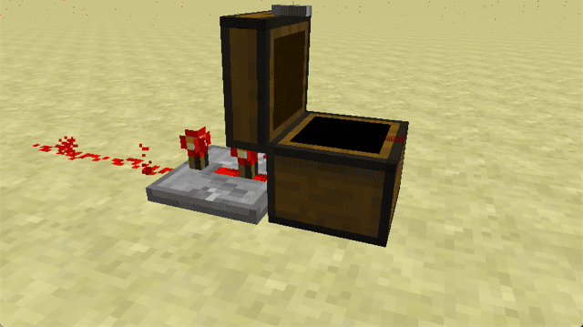陷阱箱产生的红石能量强度取决于正在使用陷阱箱的玩家数量 (最高 15 ). 不过, 如果你不希望被这个特性局限, 那么可以利用"红石中继器"将强度提高到 15 (放置中继器时需要注意朝向):